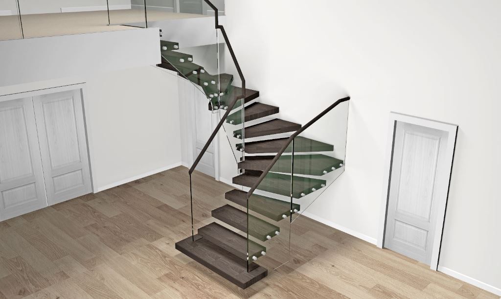 Na celoskleněné zábradlí používáme kalené sklo s bezpečnostní fólií connex v celkové tloušťce 16 mm. Kotvení se provádí pomocí nerezových prvků. Madlo je možné použít dřevěné, popřípadě se neosazuje vůbec.