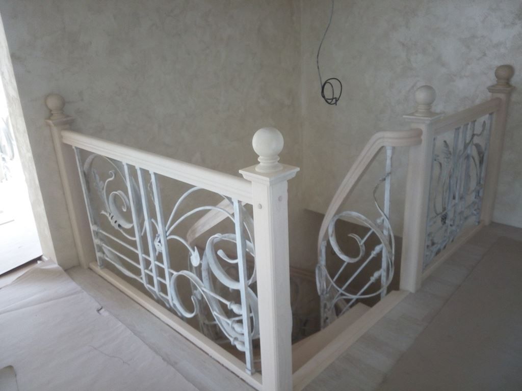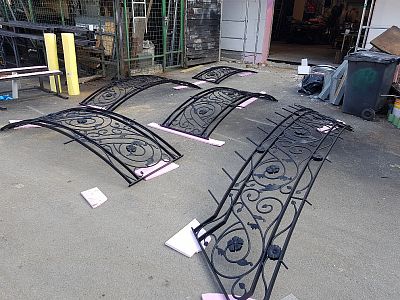 Kované zábradlí se může skládat z jednotlivých kovaných šprušlí, kovaných výplní nebo jejich kombinací. Madlo může být dřevěné nebo kované.
